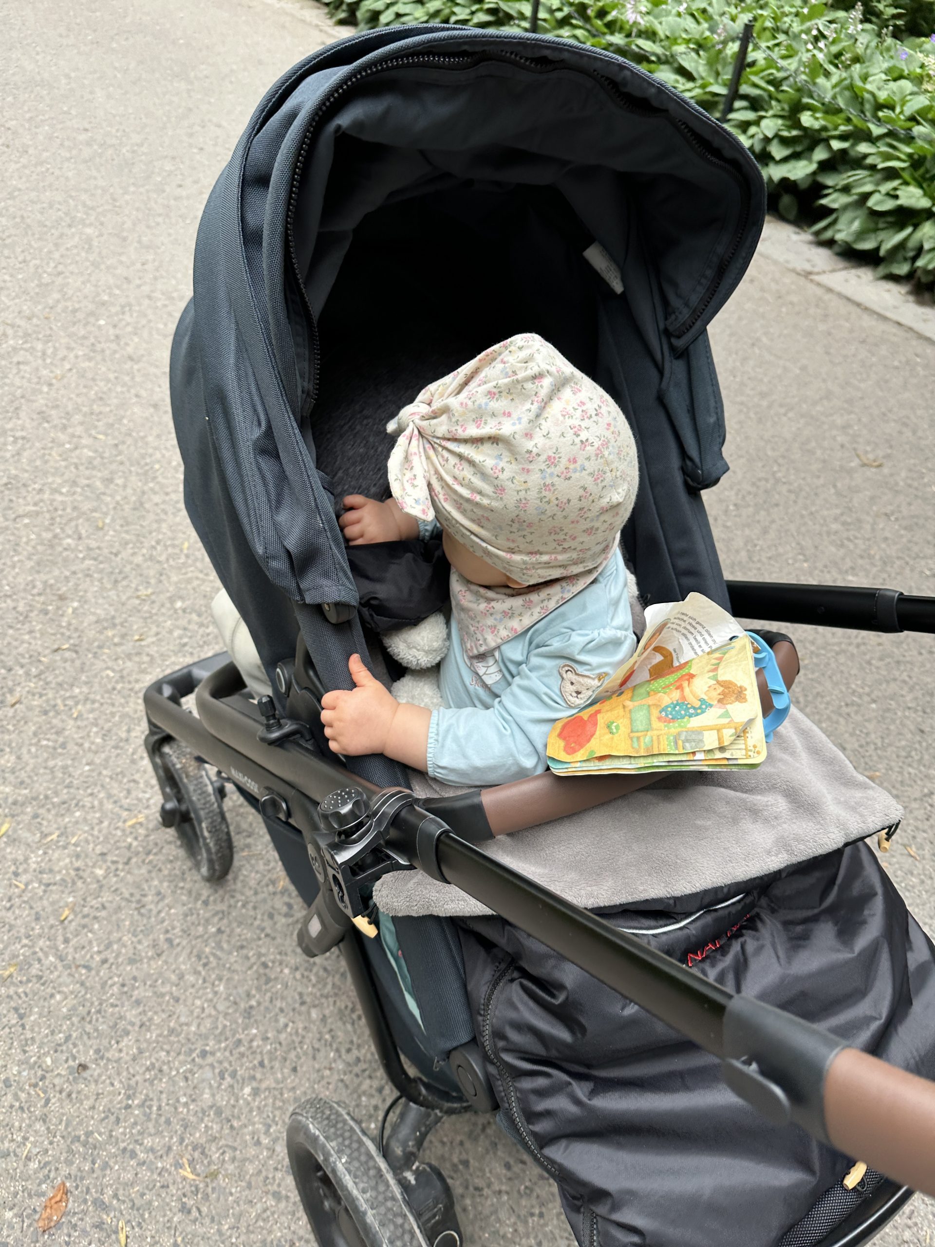 Das Einschlafen funktionierte heute nicht so gut, deshalb setzten wir Ella nochmal in den Kinderwagen und während Tim grillte ging ich mit ihr spazieren. Sie war zwar müde, schlief aber nicht ein. Als wir wieder zurück waren, versuchte ich es nochmal mit stillen und irgendwann schlief sie dabei ein.