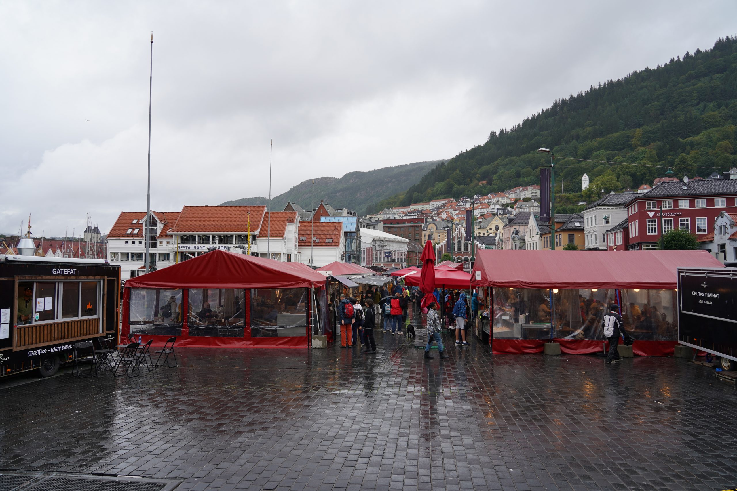 Wir gingen über den Fiskemarket. Überall Geschubse und Gedrängel. Unglaublich viele Menschen waren unterwegs. Vielleicht lag es daran, dass es einer der bekanntesten und beliebtesten Fischmärkte Norwegens ist, vielleicht lag es aber auch an den drei Kreuzfahrtschiffen. Allerdings nur ein großes und zwei kleine. Vielleicht war es aber auch eine Kombination aus beidem.