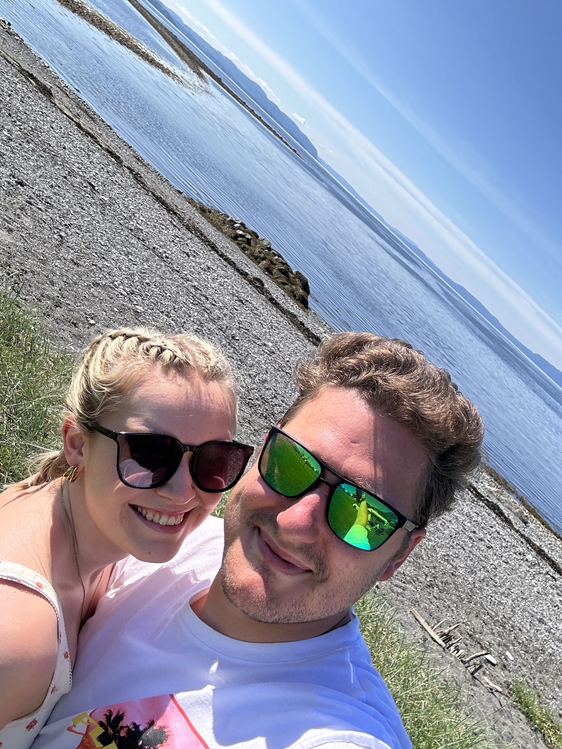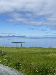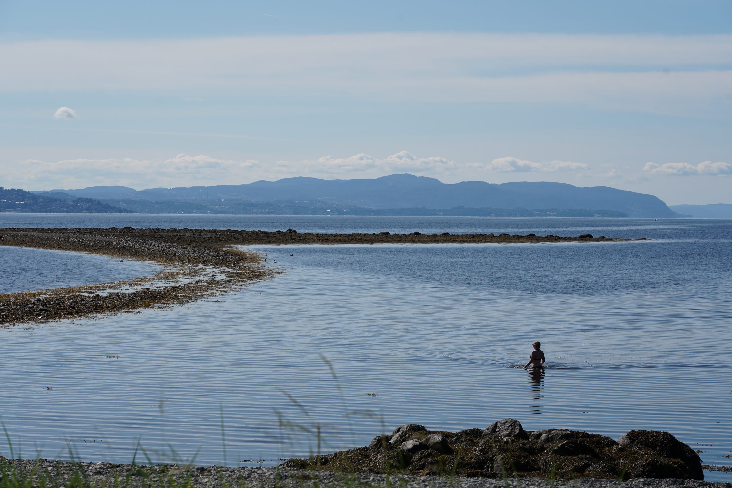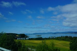 Ella spielte in der Wiese, wir bereiteten das Essen vor und aßen wieder mit wunderschönem Blick auf den Fjord.
