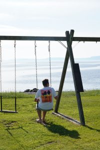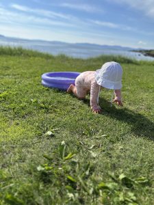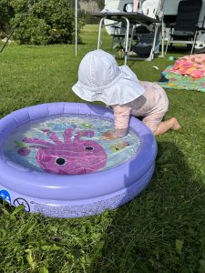 Den Nachmittag verbrachten wir damit uns zu Sonnen und zu spielen. Ich ging baden. Das Wasser war anfangs zwar ziemlich kühl, aber als ich einmal drin war, war es herrlich angenehm und ich wäre am liebsten noch ewig im Wasser geblieben. Nach meiner Badeeinheit dauerte es nicht lange und Ella wurde wach. Tim und Ella schaukelten etwas.