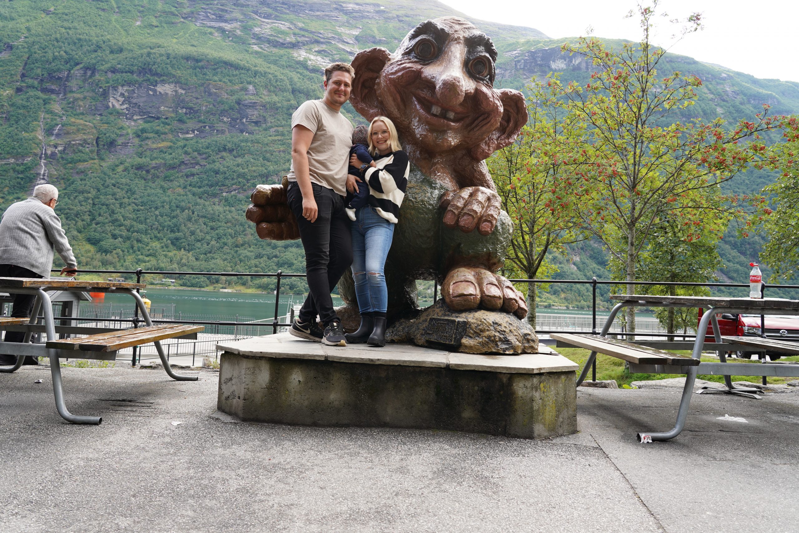 Wir schlenderten ewig durch die Souvenirgeschäfte. Am Ende gab es für uns zusammenpassende Socken – Papa Mouse, Mama Mouse und Baby Mouse. Für Tim und mich gab es jeweils eine Jacke und Ella bekam ein Kuscheltier. Über ihren Elch freute sie sich sehr. Zwischendurch gab es noch ein Softeis und Bilder vor dem großen Troll durften natürlich auch nicht fehlen.