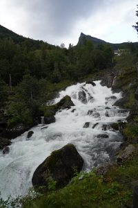 Wir machten uns fertig und überlegten uns einen Plan für den Tag. Ursprünglich wollten wir eine landschaftsroute von Åndalsnes bis nach Geiranger fahren. Allerdings war dort der erste Streckenabschnitt aufgrund von Steinschlag gesperrt. Wir überlegten, ob wir die Strecke heute von der anderen Seite aus und bis Trollstingen fahren wollen und von dort aus wieder zurück. Da jedoch eine Strecke fast zwei Stunden gewesen wären, entschieden wir uns dagegen. Stattdessen fuhren wir trotzdem erst einmal in diese Richtung und schauten uns die Hochgebirgslandschaft noch einmal in Ruhe an, bevor wir nach ca. einer dreiviertel Stunde fahrt umkehrten und zurückfuhren.