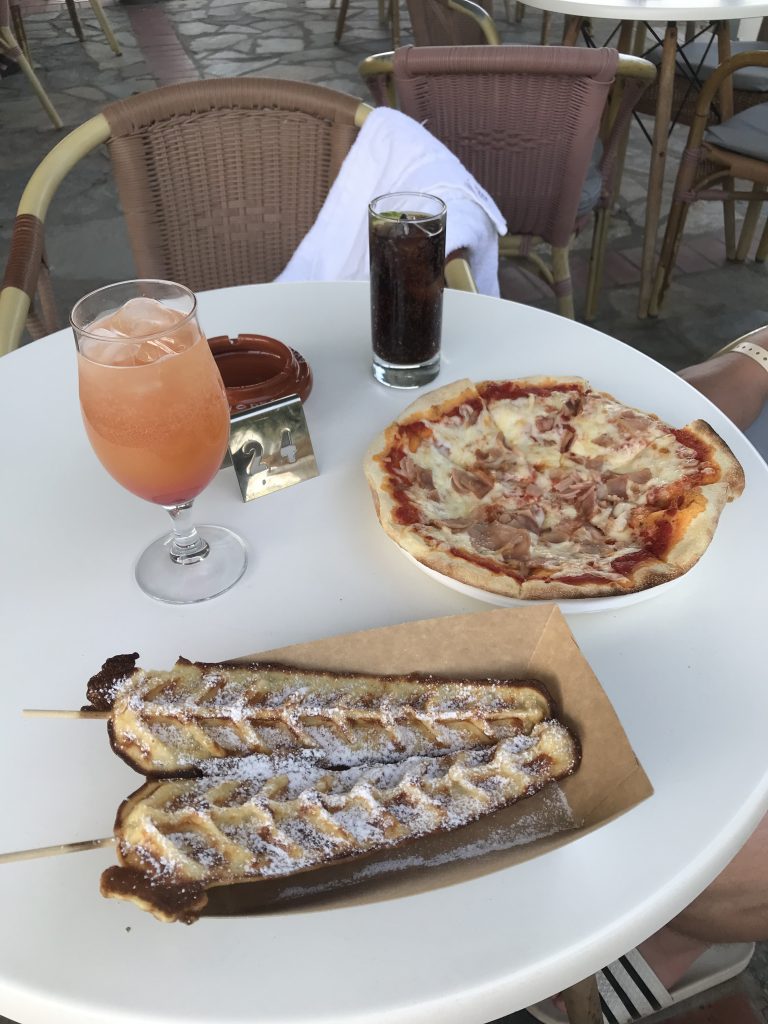 Zurück am Hotel, gab es für mich Pizza und für Ben das normale Buffet-Essen.