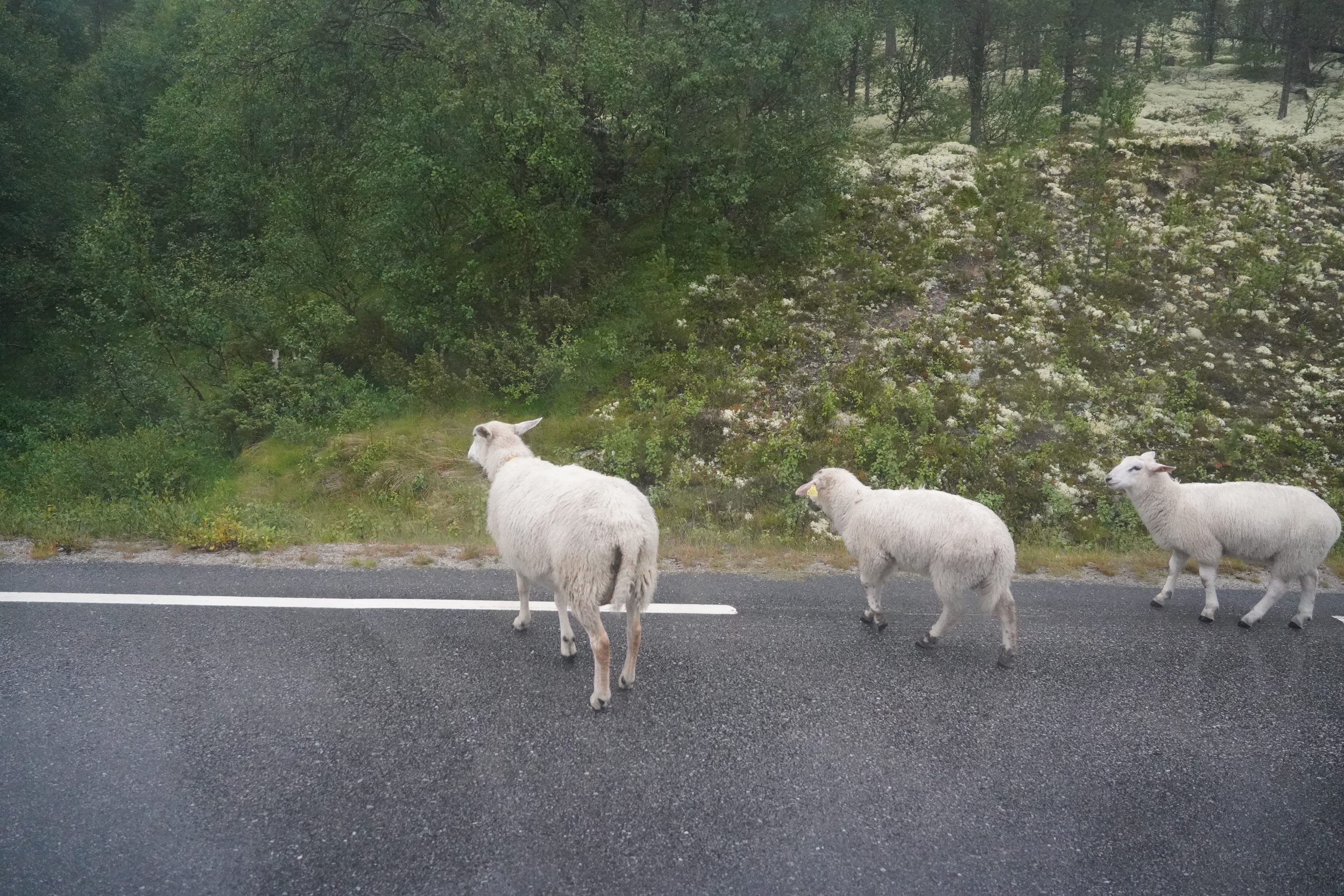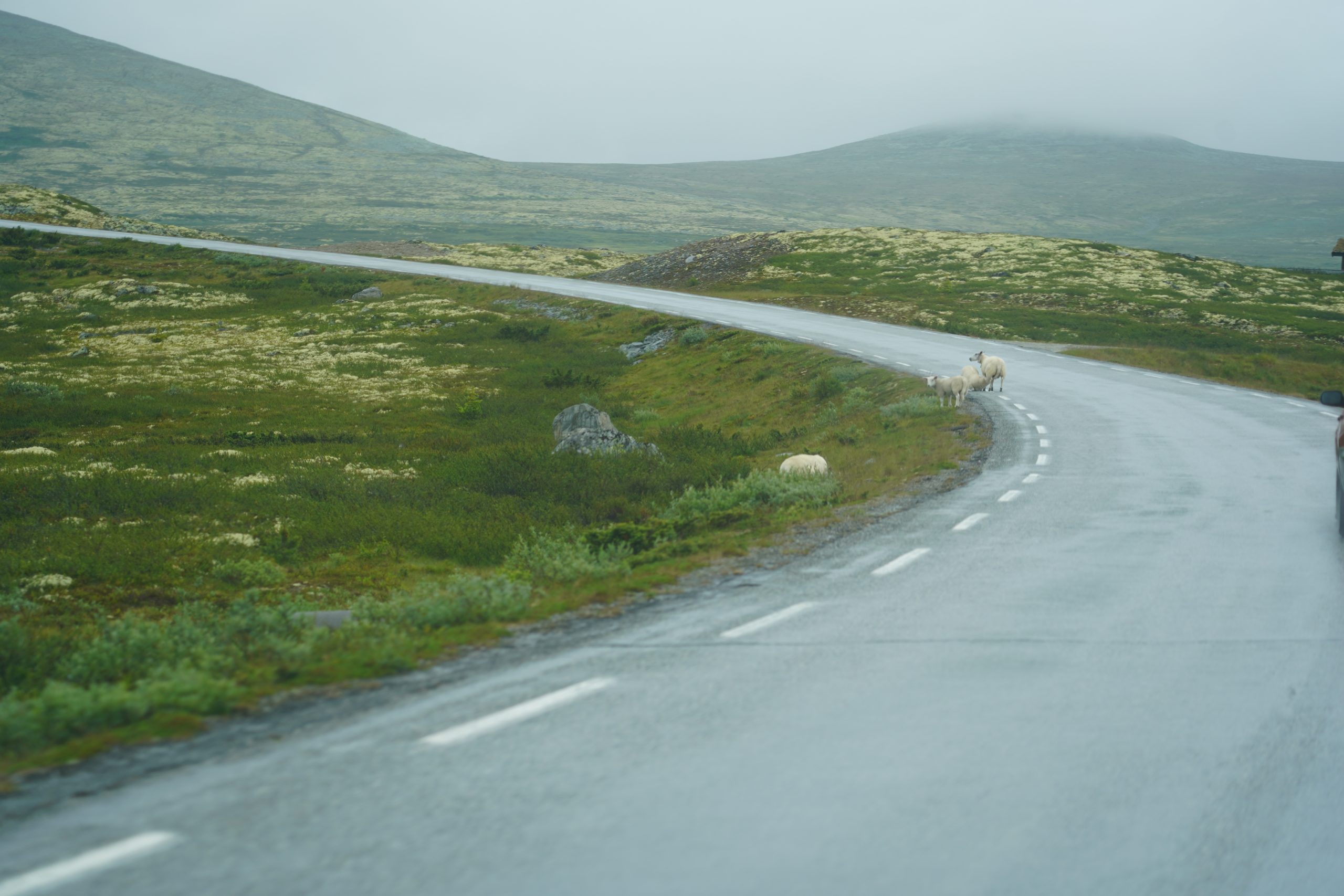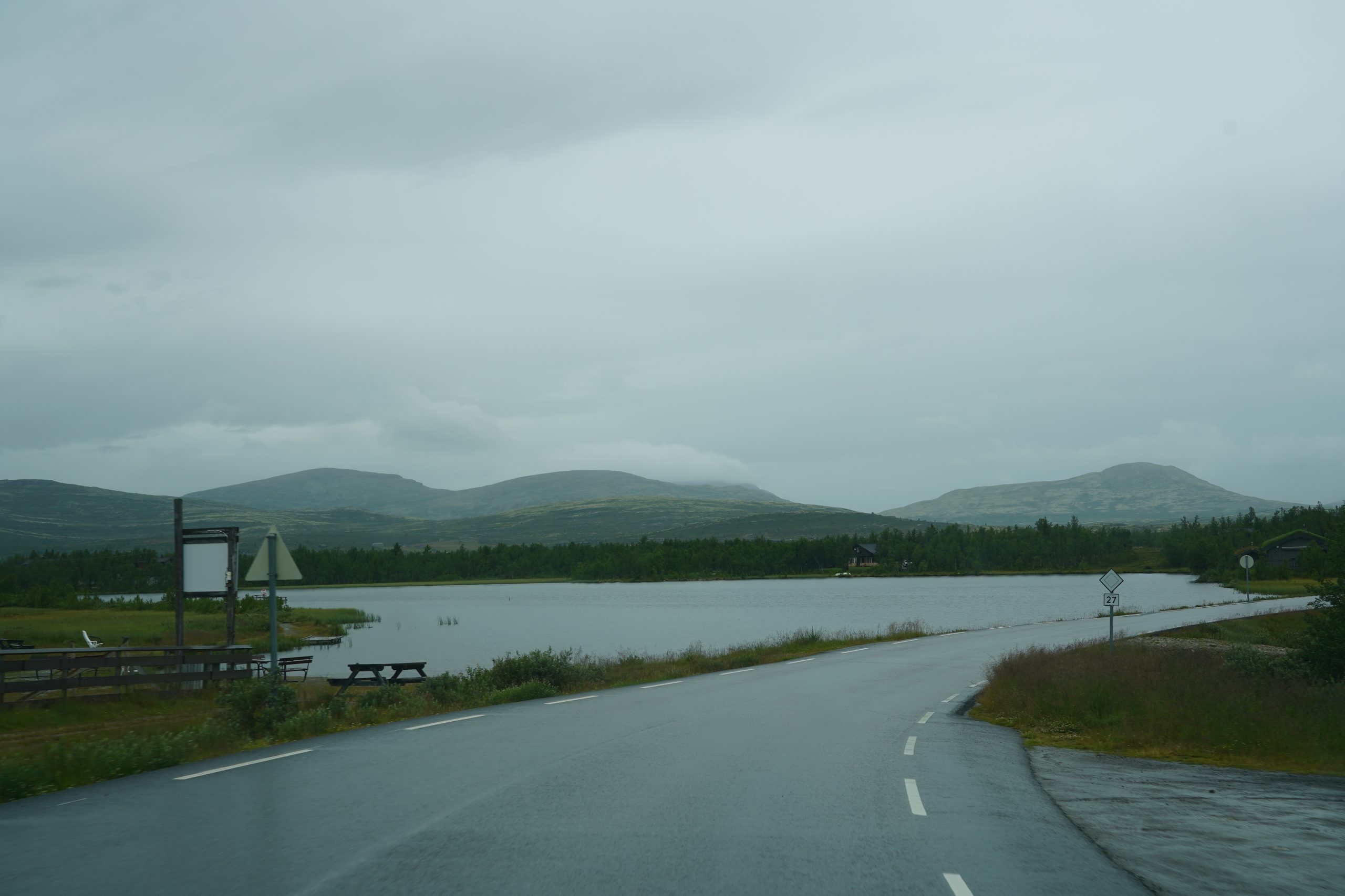 Erst wir fuhren lange bergauf und als wir oben ankamen, fuhren wir Kilometerlang über die Hochgebirgslandschaft. Man konnte ewig weit schauen. Immer mal Berge, Seen und Schafe mitten auf der Fahrbahn.