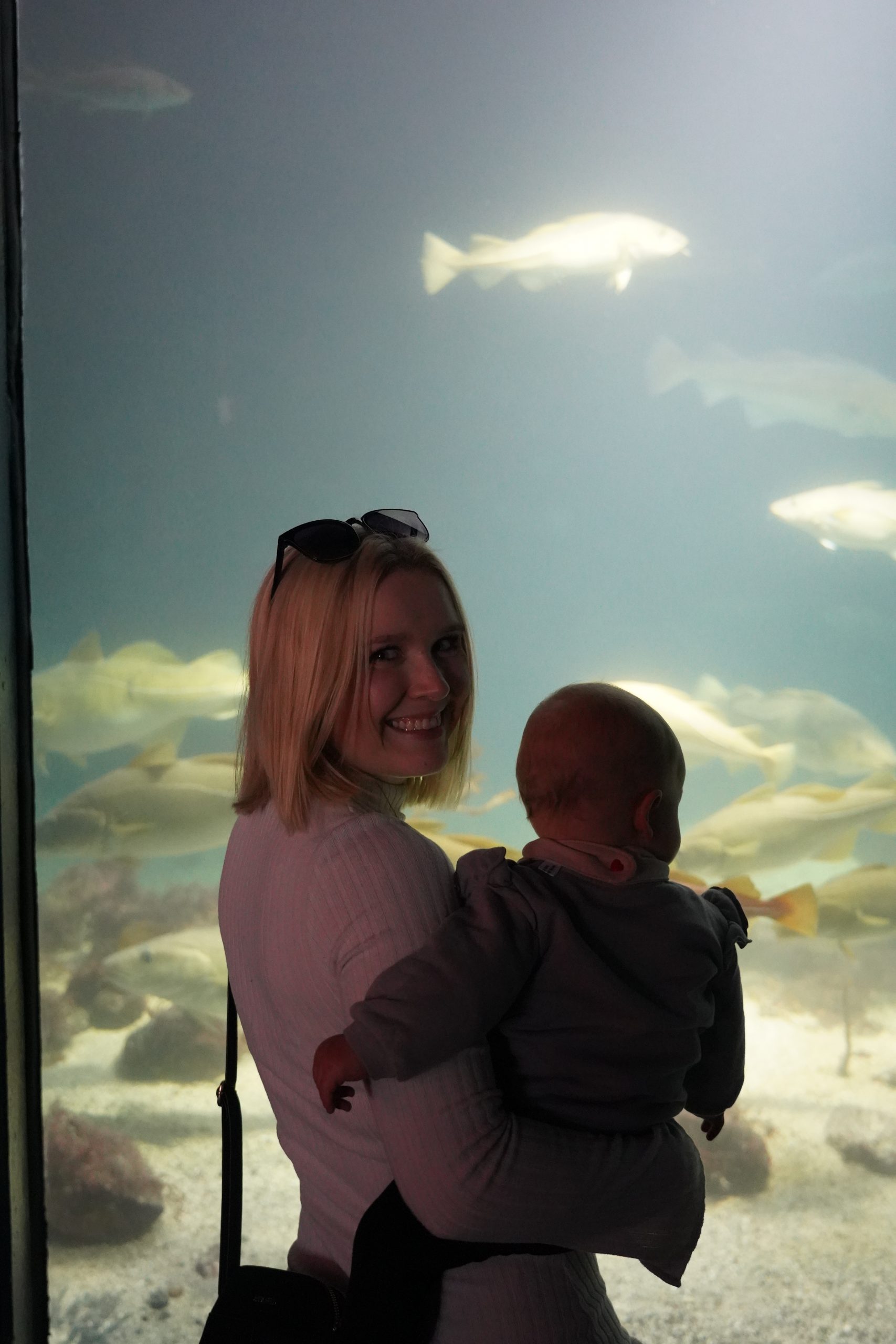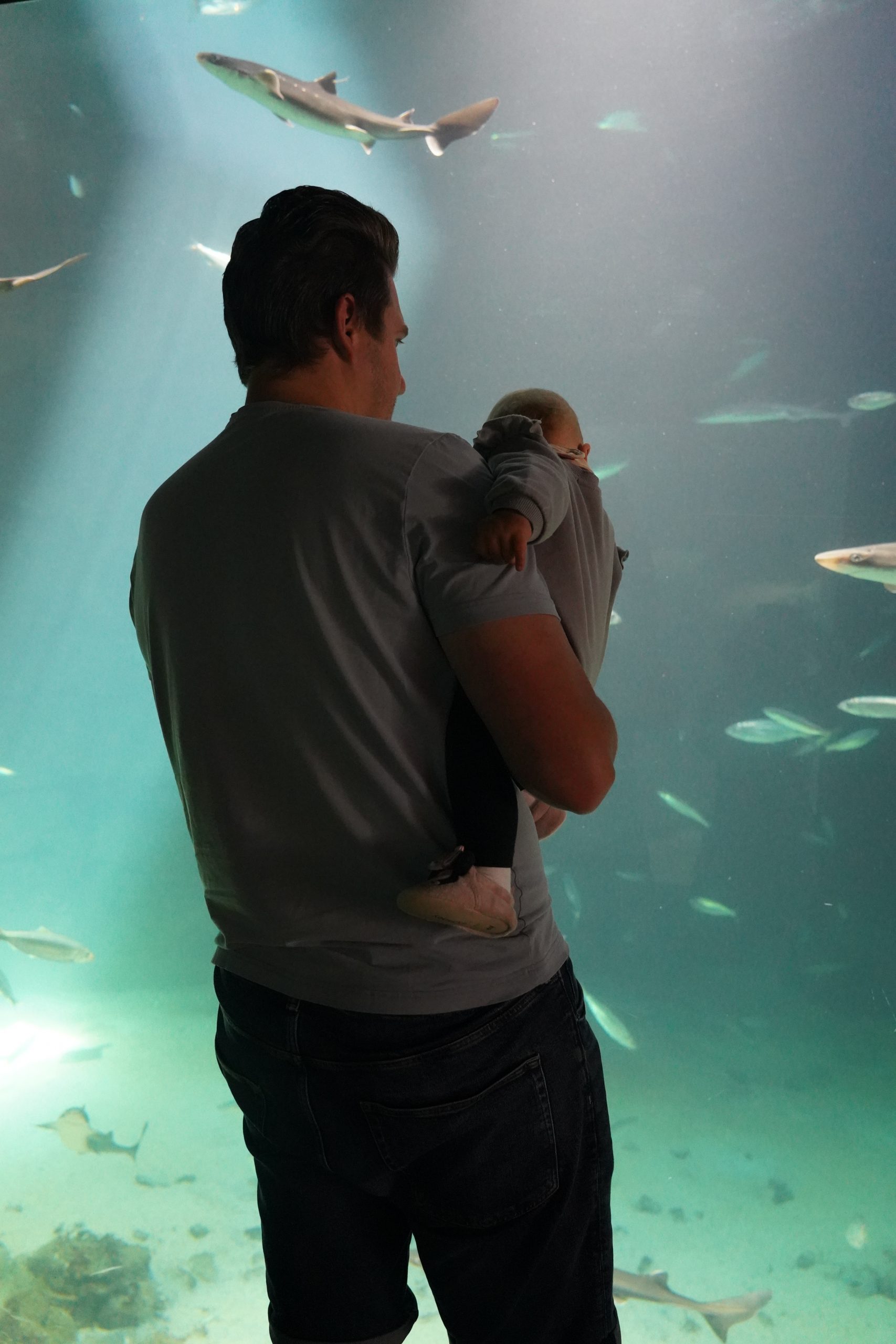 Wir gingen durch das Aquarium und betrachteten die Meereslebewesen. Ella war fasziniert davon und schaute sich alles ganz genau an.