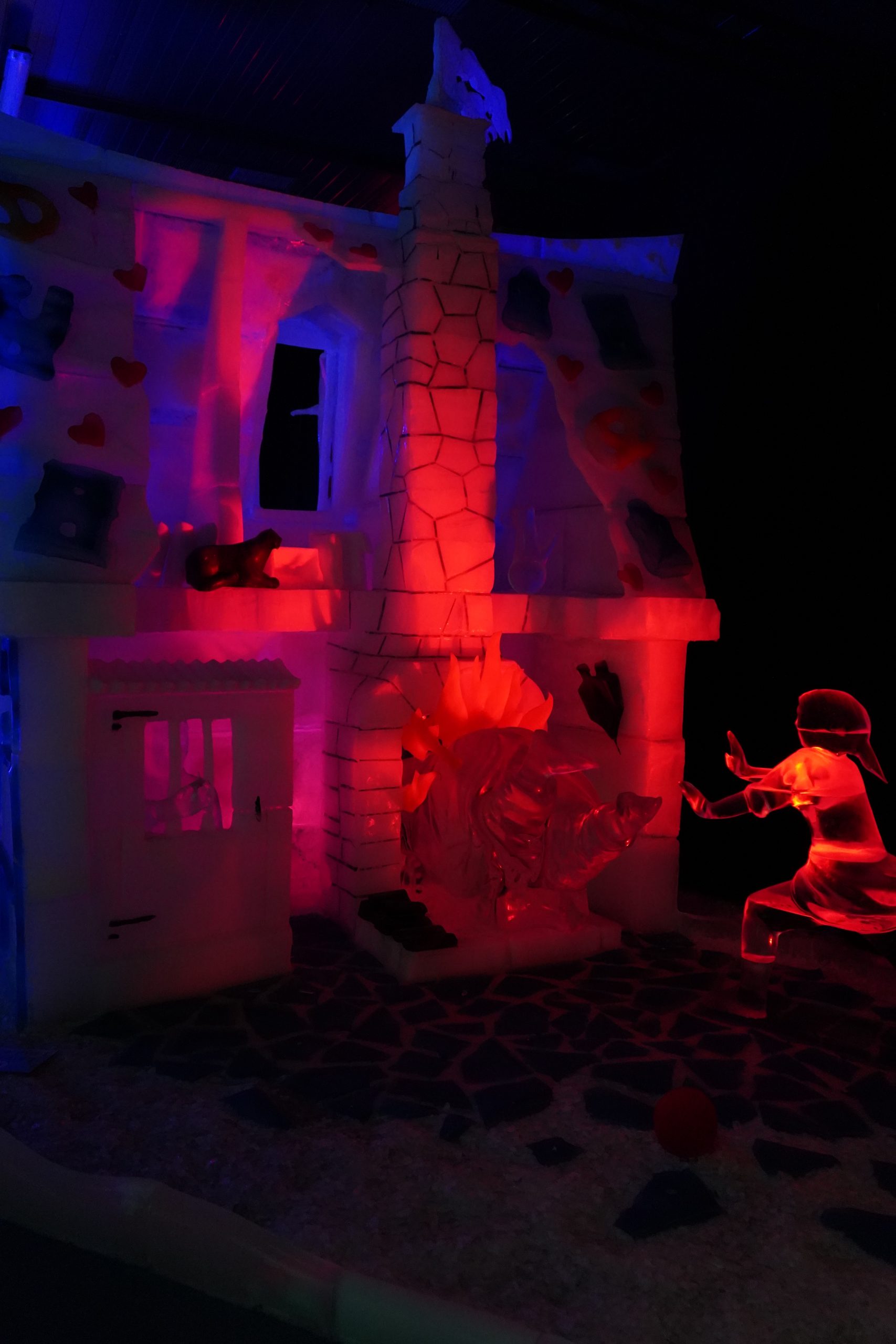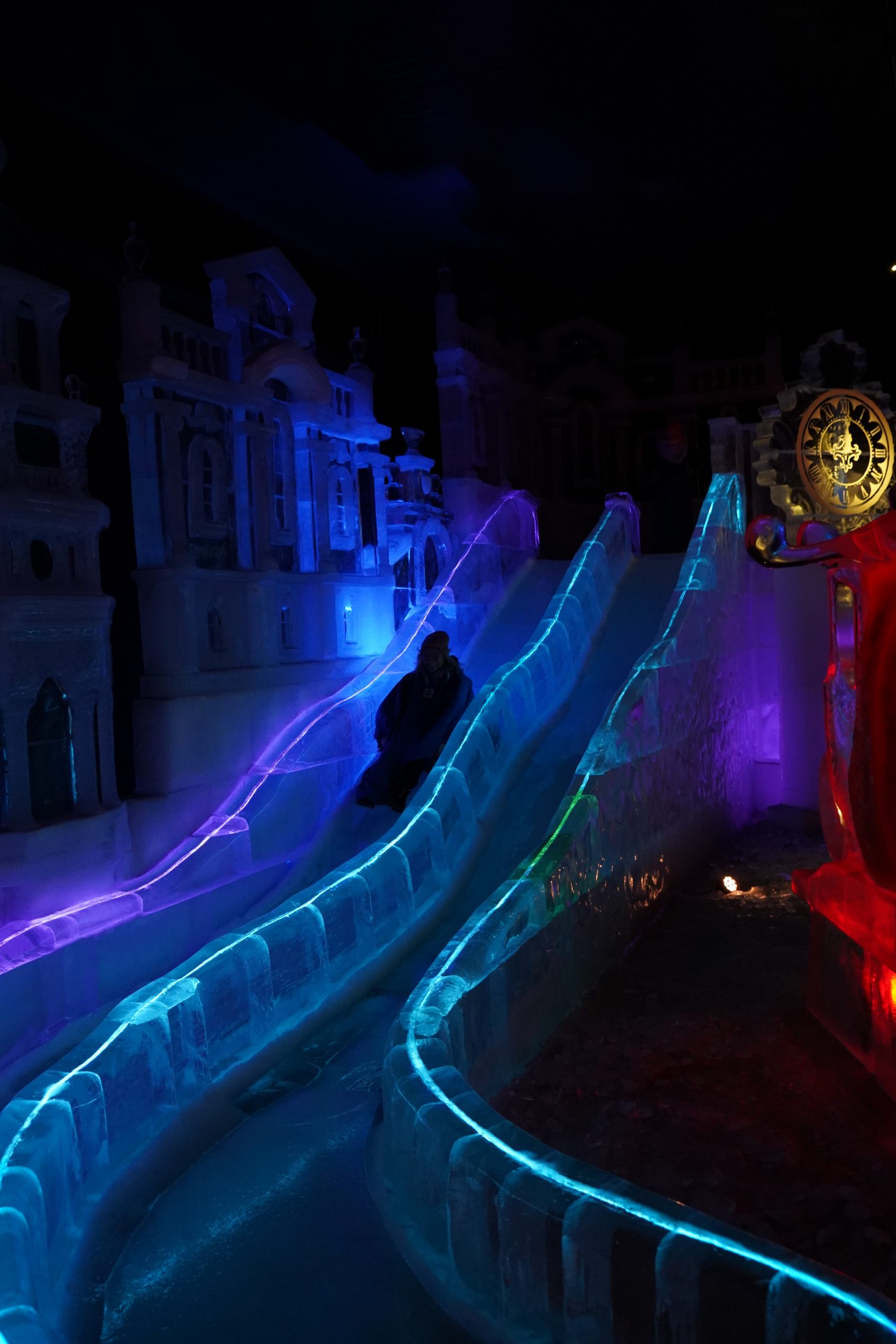 Ebenfalls aus Eis gab es zwei Rutschen. Eine kleinere, diese war Teil des Märchens „Frau Holle“ und eine große Rutsche, welche Teil von „Cinderella“ war. Diese habe ich natürlich beide ausprobiert. Zwischendurch haben wir uns an der Bar bei warmen Getränken aufgewärmt. Zudem haben wir herausgefunden, dass das Eishotel auch wechselt. Dieses Mal ist es ein Teil des Märchens „Die Schneekönigin“. Unglaublich wie es sein muss dort zu schlafen.