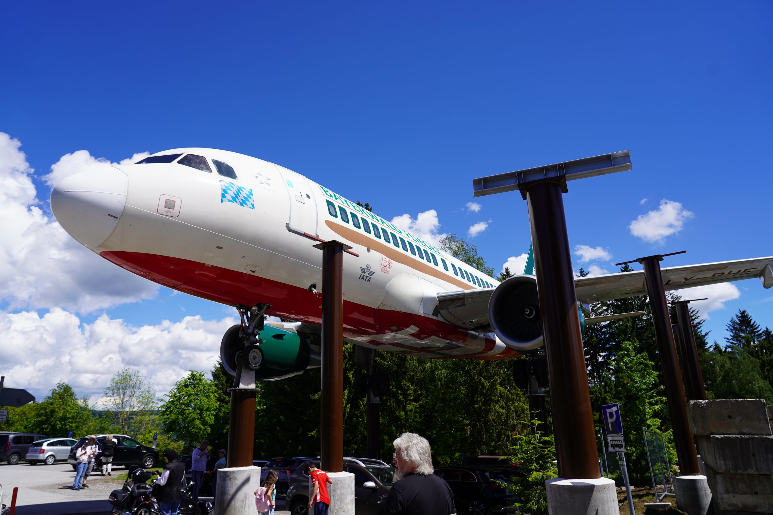 Direkt vor dem Eingang stand ein richtiges Flugzeug, ein Airbus A319, auf Stelzen. Das Flugzeug wird gerade umgebaut und stellt ab Sommer diesen Jahres eine Besucherattraktion dar. Bald kann man dort einen VR-Rundflug über den bayerischen Wald machen.