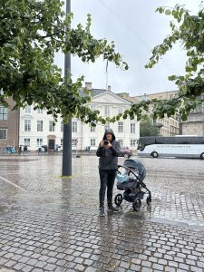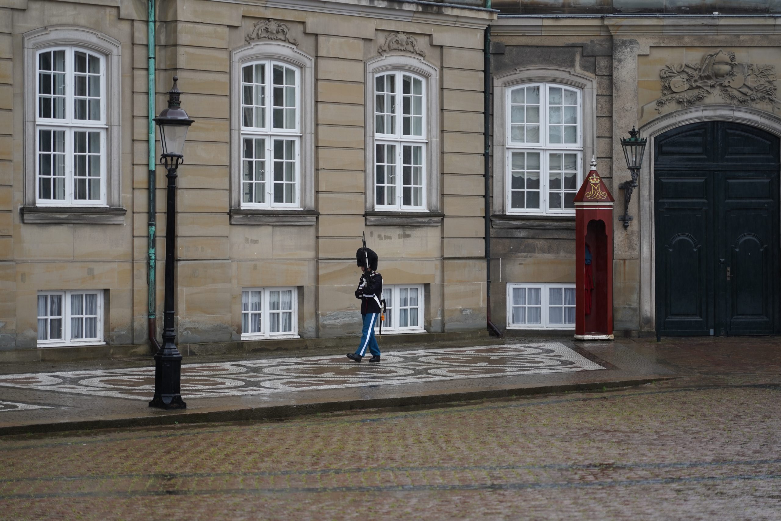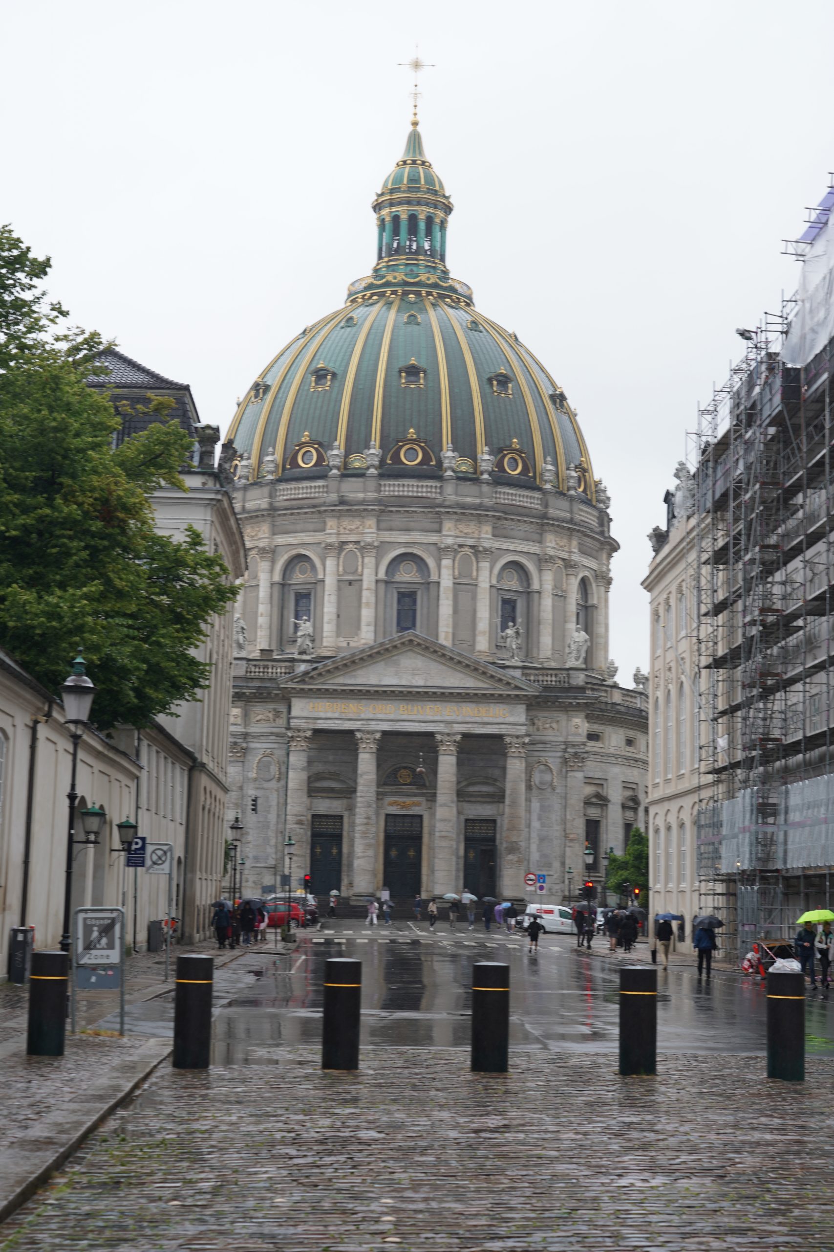 Unser Weg sollte uns weiter bis zur kleinen Meerjungfrau führen. Doch da Ella schon Hunger hatte und Tim und ich komplett durchgeweicht waren, entschieden wir uns dazu, zurück zum Auto zu gehen. Auf dem Weg dorthin kamen wir an der Amalienborg und Frederiks Kirke vorbei.