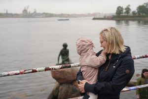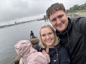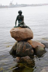 Eine bronzene Statur im Meer in Form der kleinen Meerjungfrau. Wahrscheinlich hatten wir Glück, dass aufgrund des Wetters nicht so viel los war. Wir schossen ein paar Bilder, gingen zurück zum Auto und fuhren zum Campingplatz.