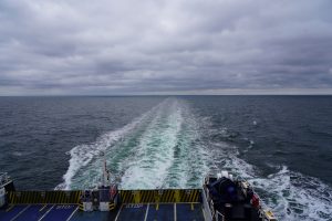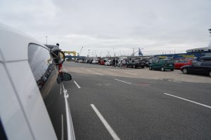 Halb acht verließen wir den Campingplatz in Malchow und fuhren los in Richtung Rostock/ Warnemünde zu unserer Fähre. Nach einer knappen Stunde Fahrt, erreichten wir diese und reihten uns ein.