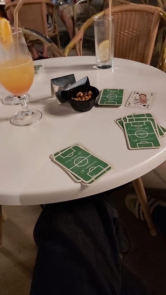 Nach dem Essen gingen wir noch einmal aufs Zimmer, da ich Bauchschmerzen bekam. Nach einer kurzen Verschnaufpause gingen wir das Hotelgelände erkunden und ließen den Tag mit alkoholfreien Cocktails und Karten spielen ausklingen.