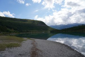 Wir sahen Bergseen, mit türkisfarbenem Wasser, Wasserfälle und den daraus entsprungenen Flüssen. Sogar einen Elch sahen wir, als dieser gerade durch einen Fluss lief.