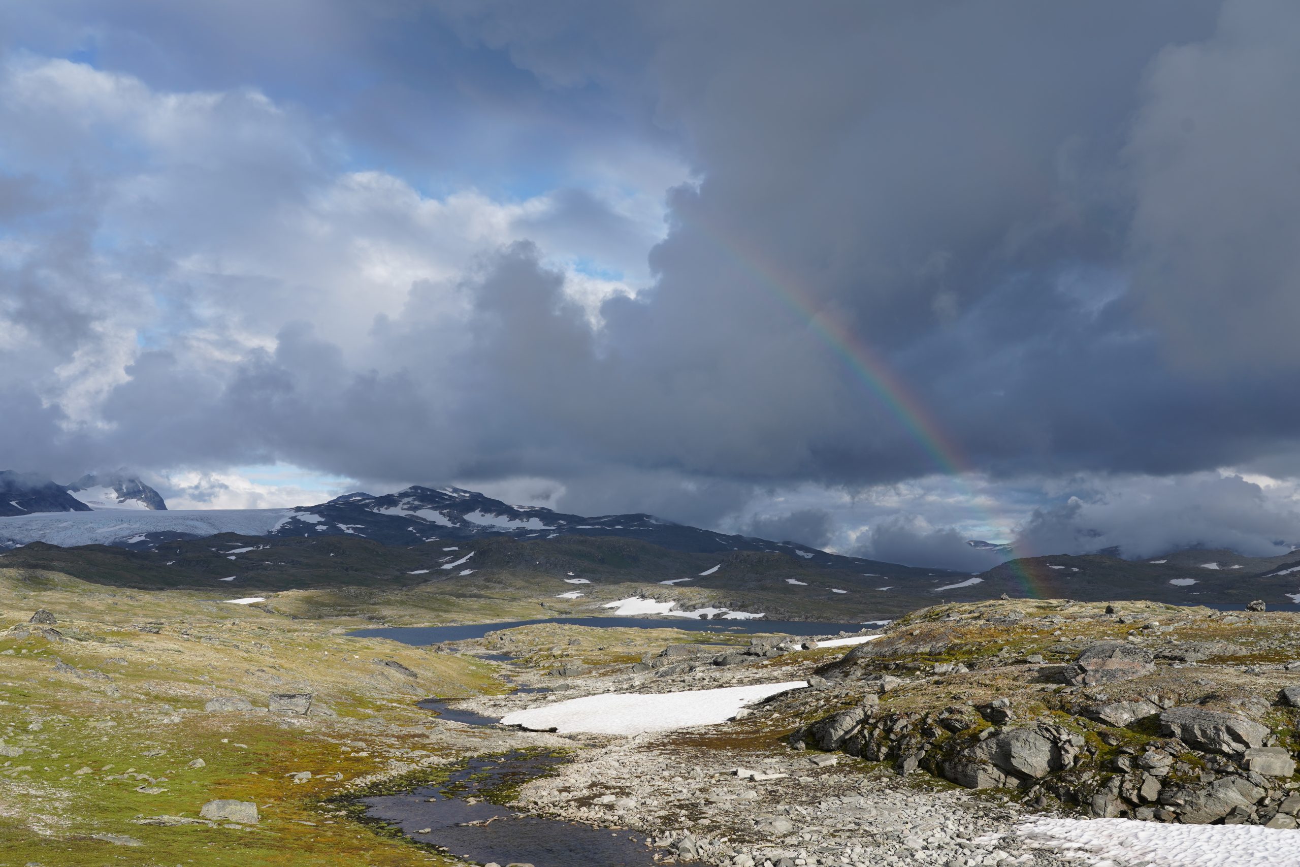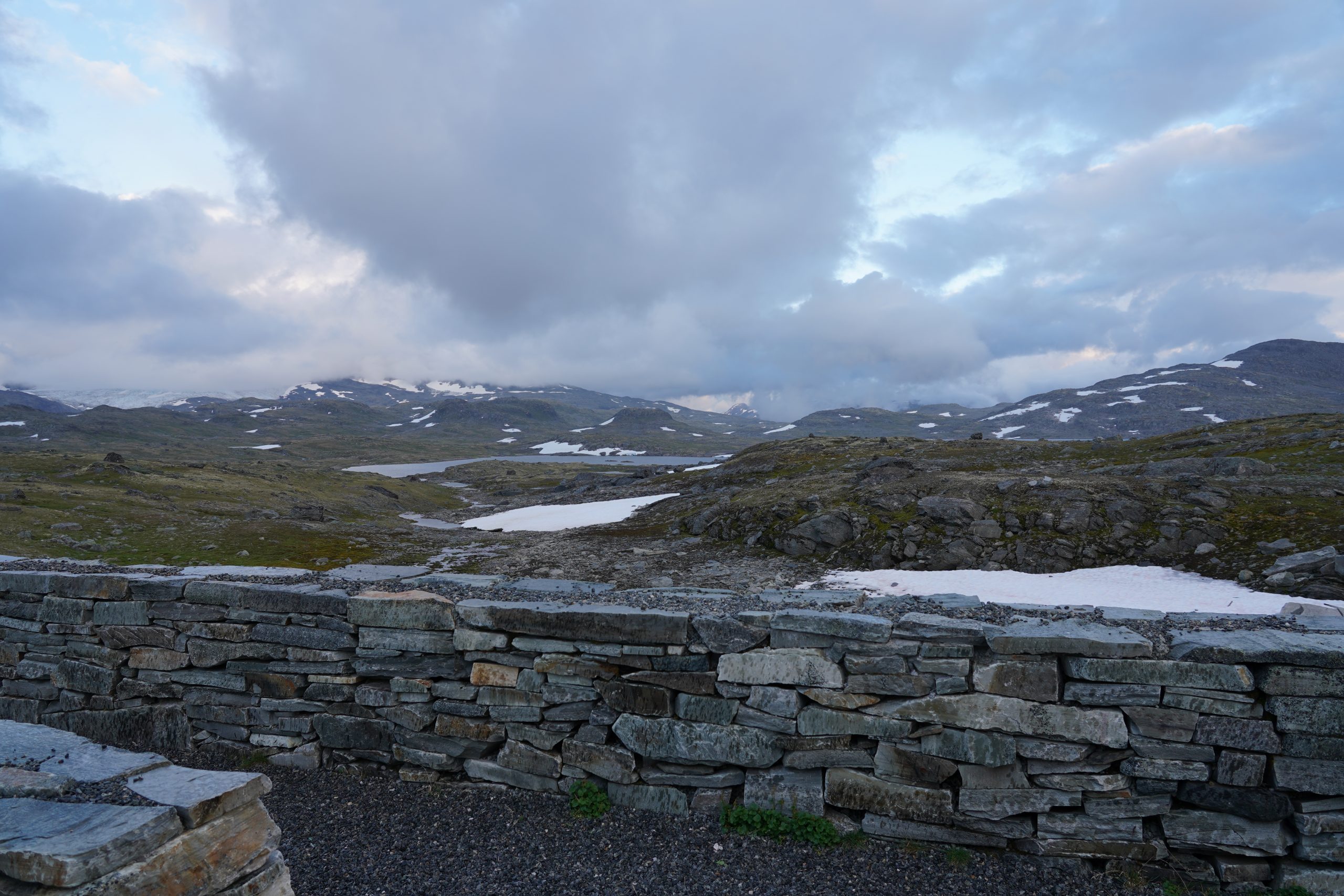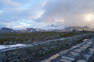 Heute fuhren wir einen Teil der Landschaftsroute „Sognefjellet“. Auf dieser fuhren wir immer weiter und weiter nach oben und erreichten die höchste Passstraße Nordeuropas. Von 0 Meter bis auf über 1400 Meter nach oben. Mitten in eine Gletscherlandschaft.